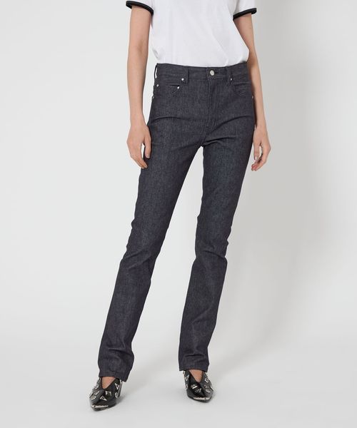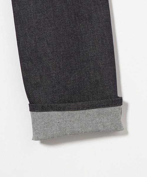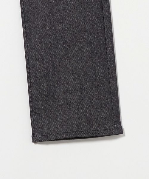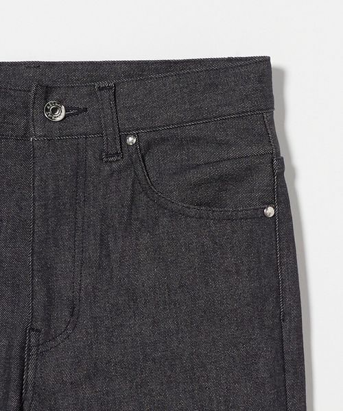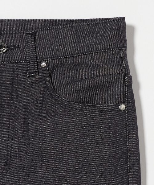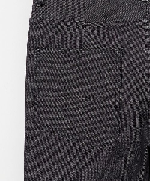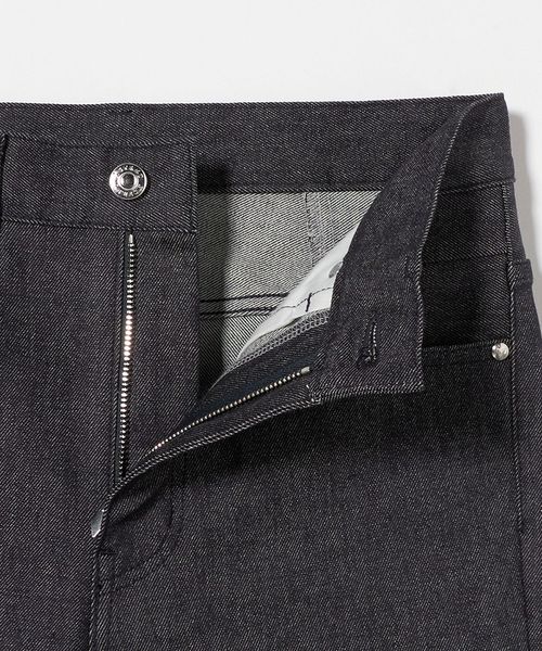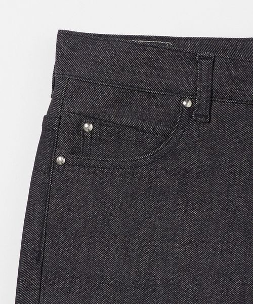 インディゴでなく、反応染で仕上げた生地は色落ちしにくいのが特徴のデニム素材。