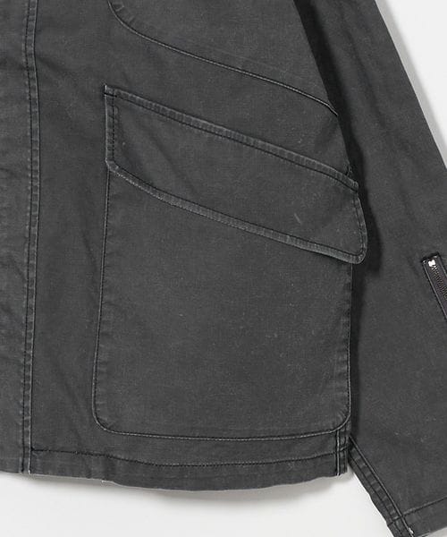 ゆったりしたサイズ感のカバーオールとライダースを融合したデザインのブルゾン。