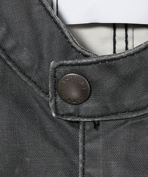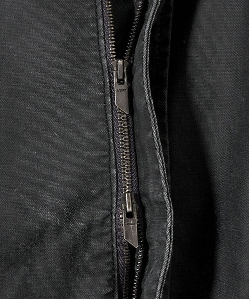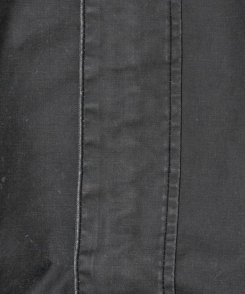 コットンツイルにコーティング加工された生地を製品でストーンウォッシュ加工することでヴィンテージ感を出しています。