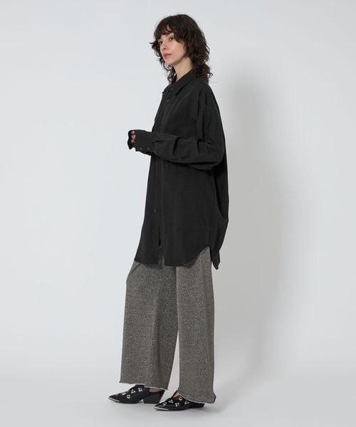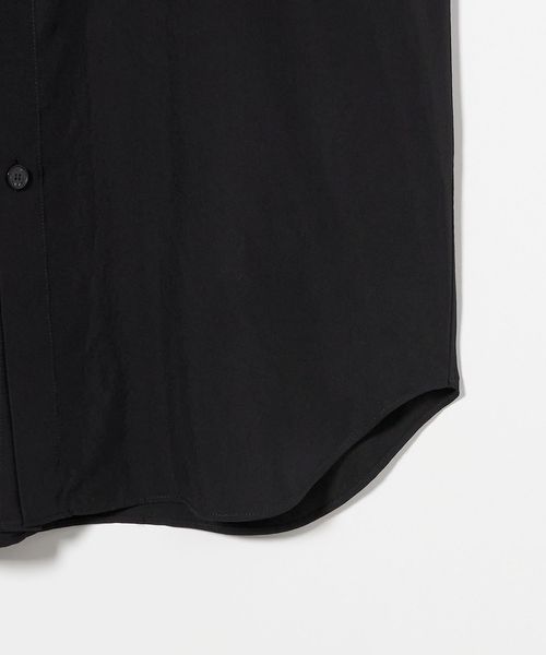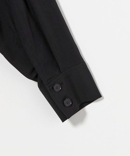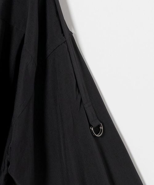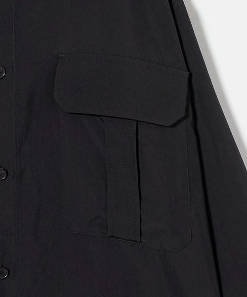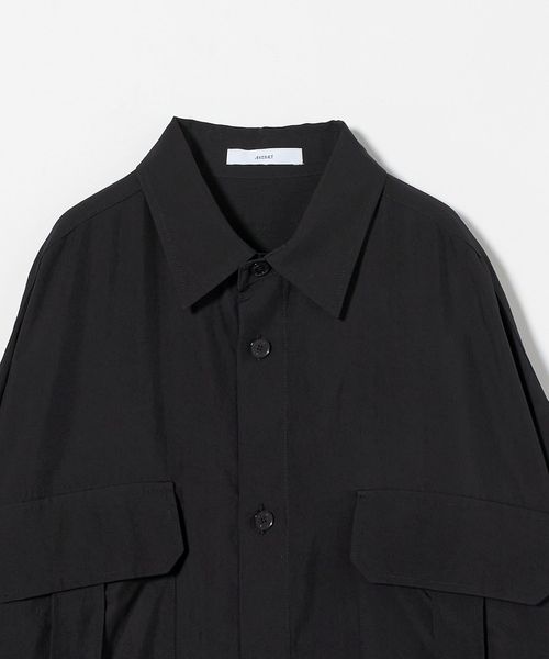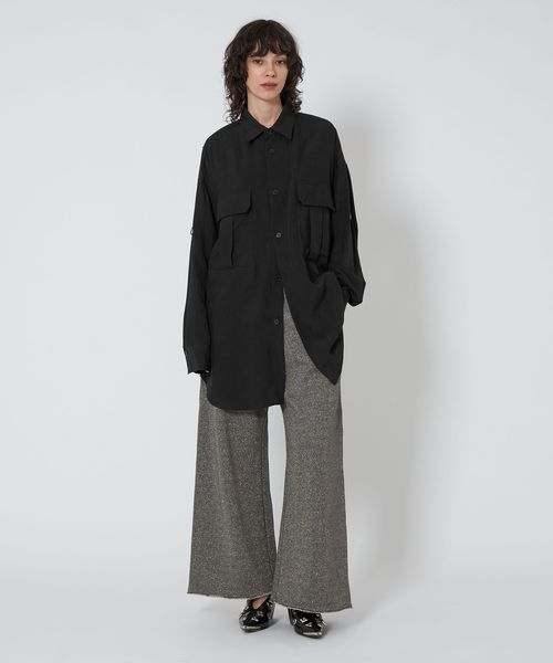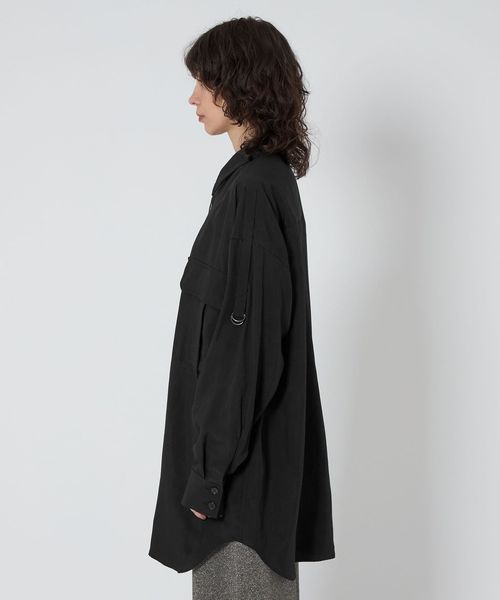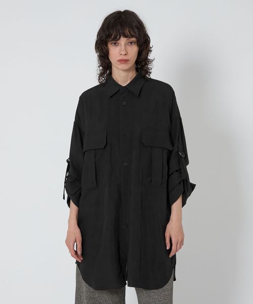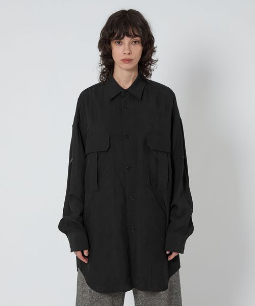 ミリタリーテイスト感じるデザインにレーヨンの落ち感のある生地感を用いたビッグシルエットシャツ。