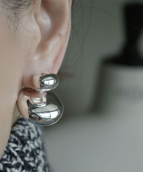 耳たぶを挟み込むようなデザインは、どの角度から見ても彫刻的な存在感を放つアイテムです。