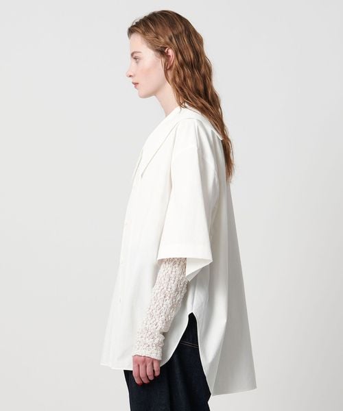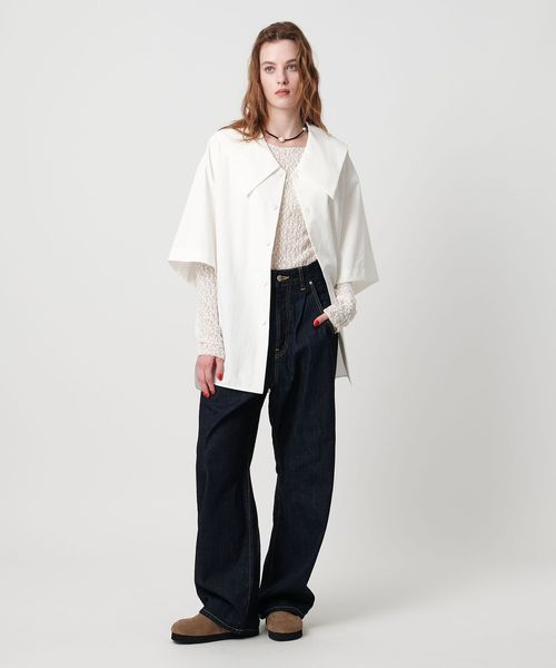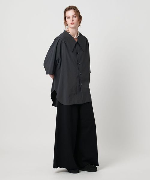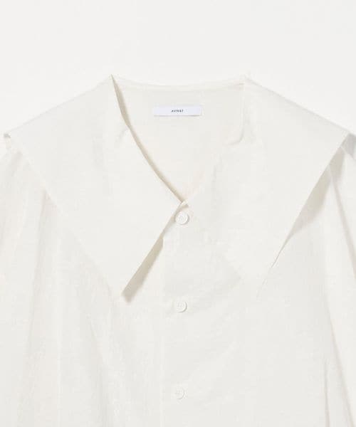 大きな襟が特徴のブラウスは、前を開けて軽い羽織りとしても活躍してくれる1枚。