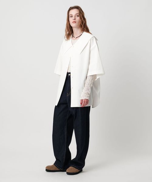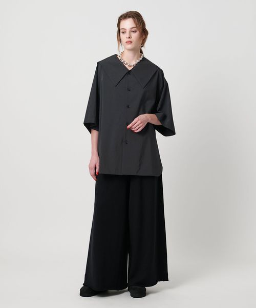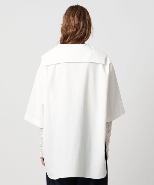 セーラーカラーデザインが特徴のビッグシルエットの5分袖ブラウス。