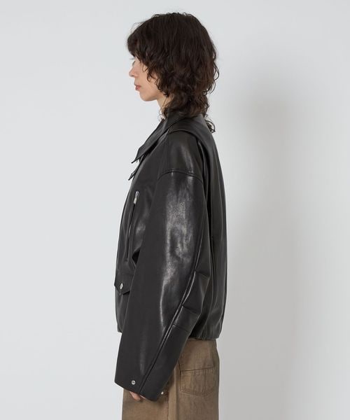 <ASTRAET>スソゴム ラムレザー ジップブルゾン UNISEX