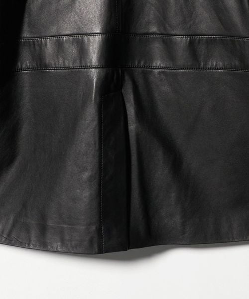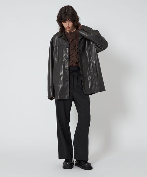 マニッシュな雰囲気のレザーカバーオール。