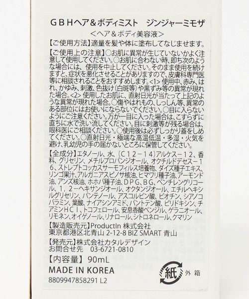 品名:GBH HAIR BODY MIST 品番:54984000020