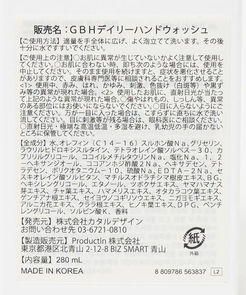 品名:GBH DAILY HAND WASH 品番:54984000027