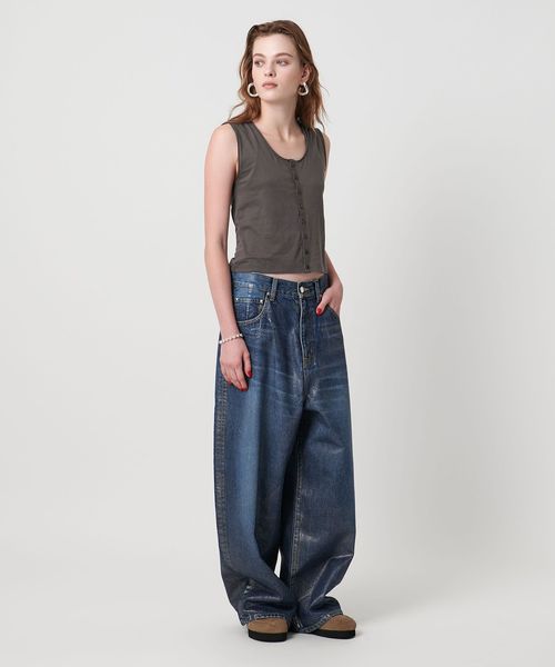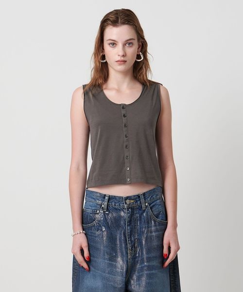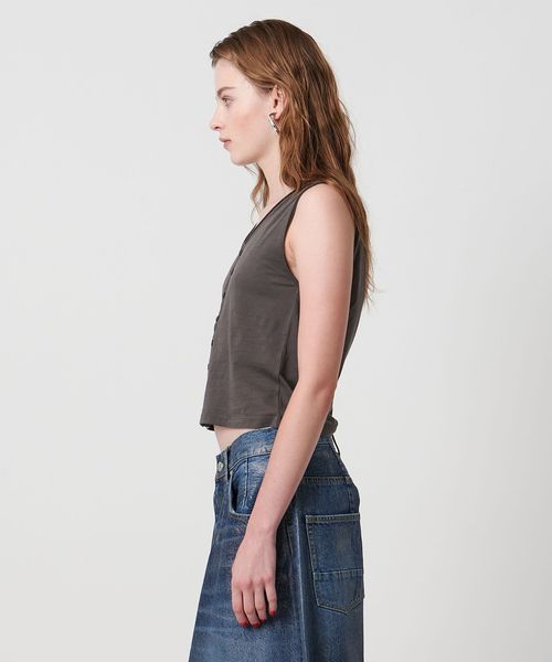 ワイドパンツとも好相性なコンパクトカットソーベスト。