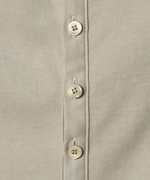 深めのUネック、多めのボタンがデザインポイントのすっきりとした着丈のカットソー。