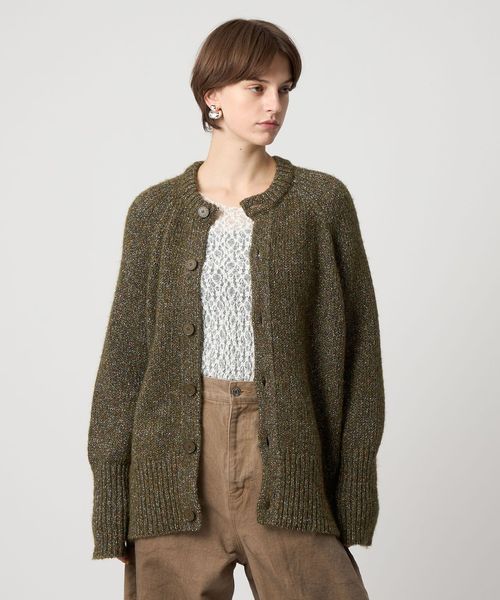 アウターライクに羽織っていただけるローゲージのラメカーディガン。
