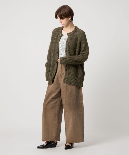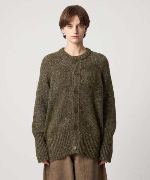 アウターライクに羽織っていただけるローゲージのラメカーディガン。