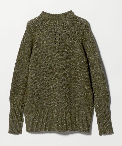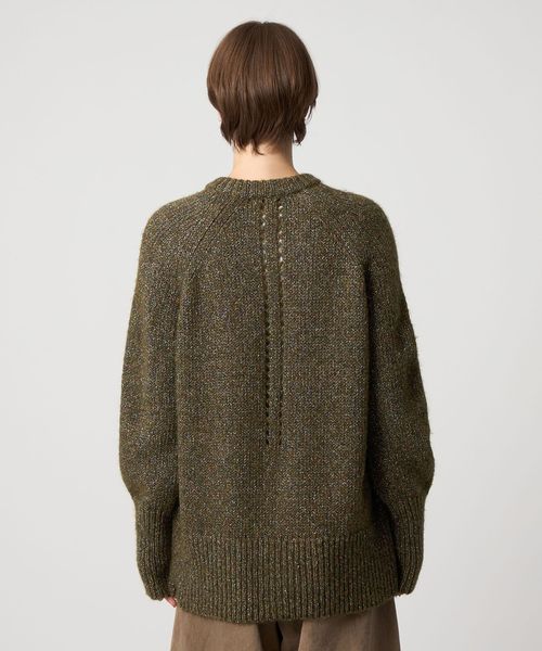 カラフルなラメやネップの入ったベースの糸をより合わせたローゲージニット。