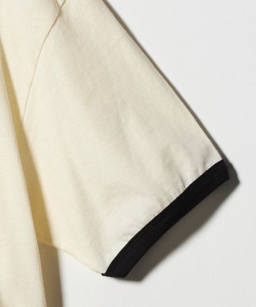フロントに描かれた愛らしいプリントが目を引くリンガーTシャツ。