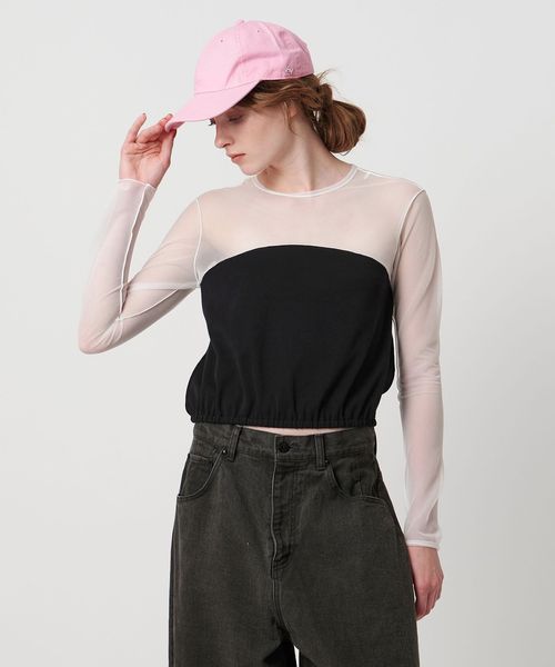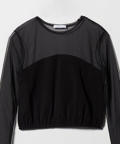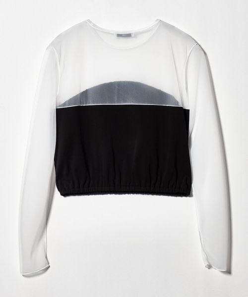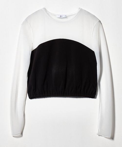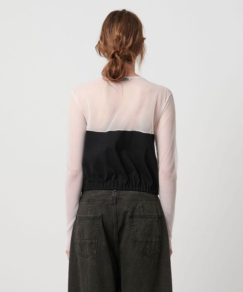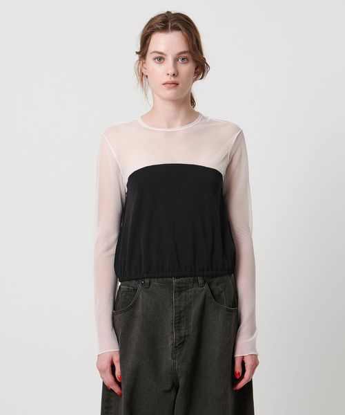 繊細でハリ感のあるハイゲージなシアー素材とコットンフライス素材をコンビ使いしています。