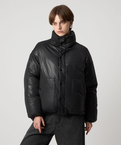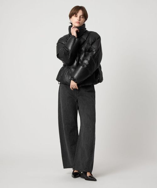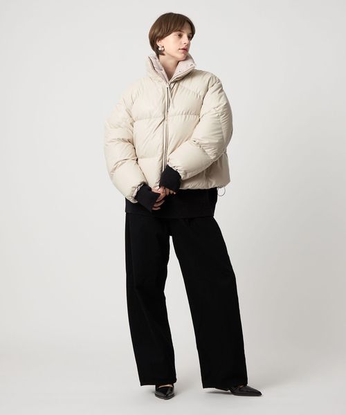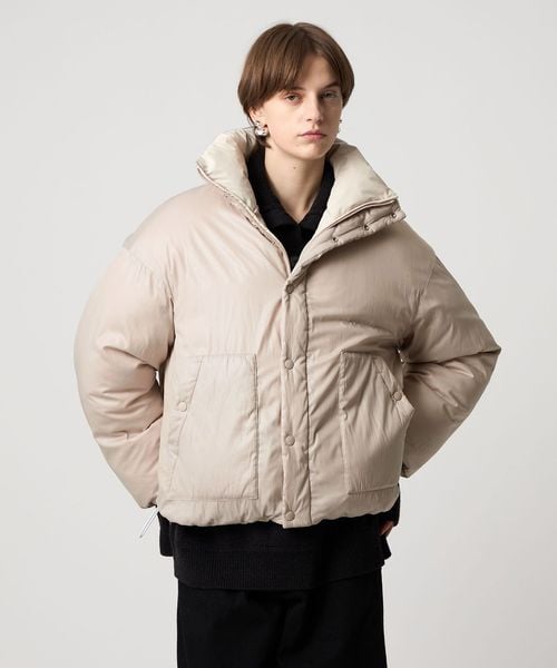程よいゆとりを持たせたシルエットのスタンドカラーダウンジャケット。