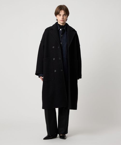 身幅、袖幅のしっかりあるマニッシュな雰囲気のビッグシルエットのコート。