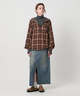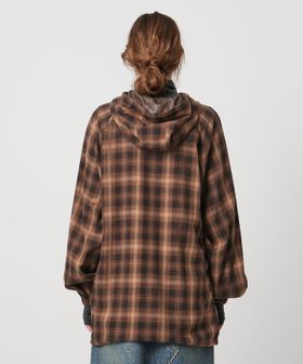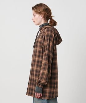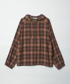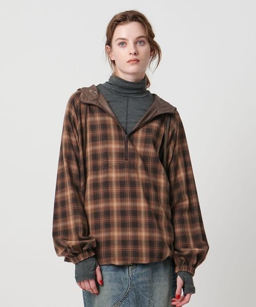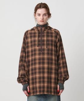 ダークトーンのチェック柄が大人カジュアルにも取り入れやすいアノラックタイプのプルオーバー。