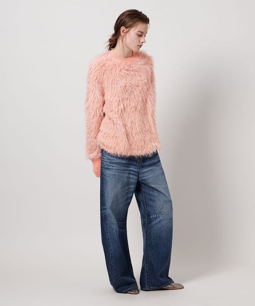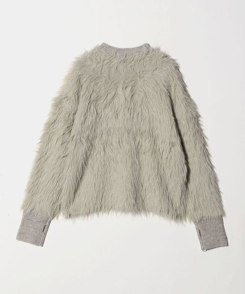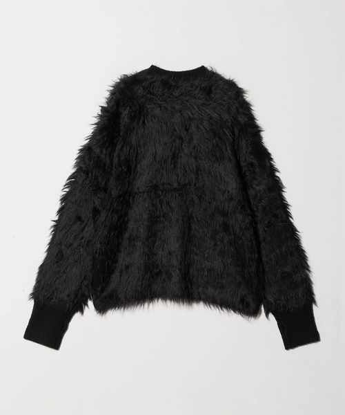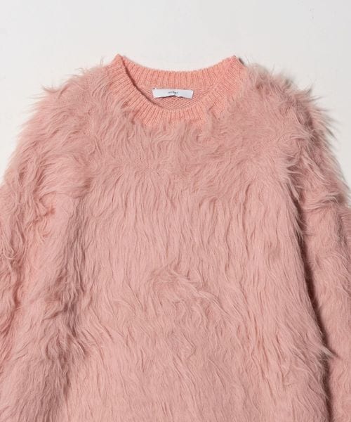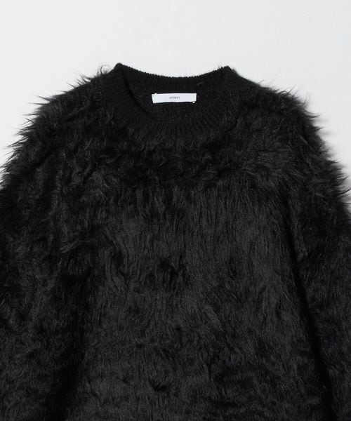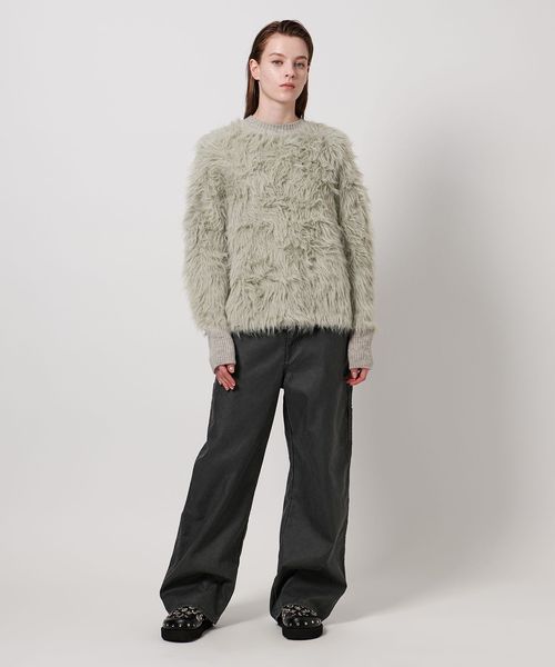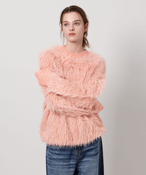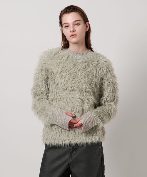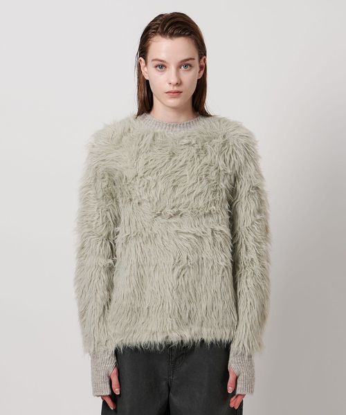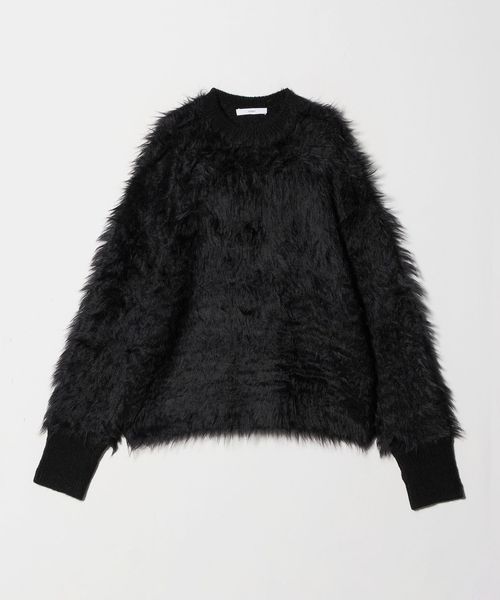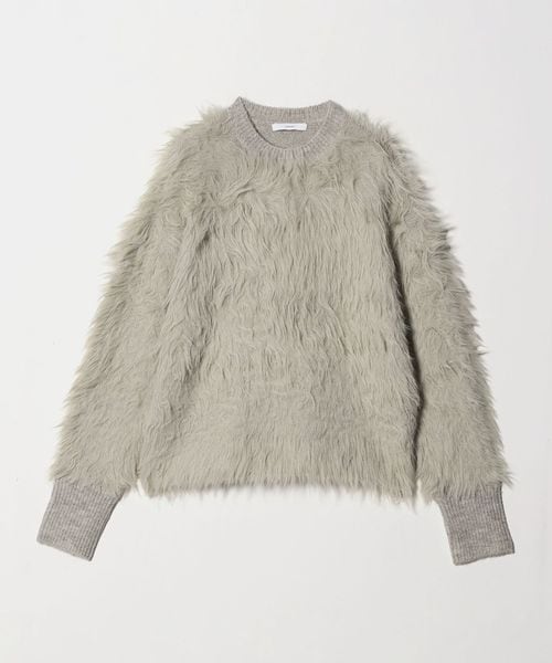 シャギーのへアリーな表情が目を引くボクシーシルエットのクルーネックニット。