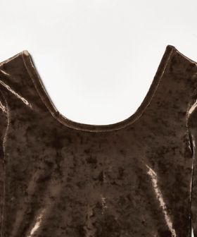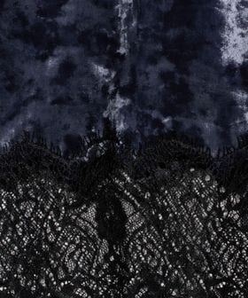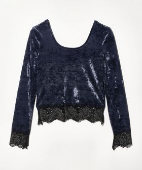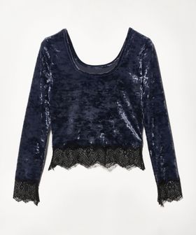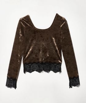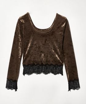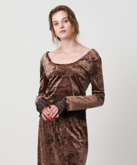 ニュアンスのある見え方の軽やかなベロア素材とレースを組み合わせています。