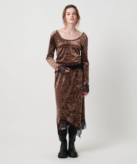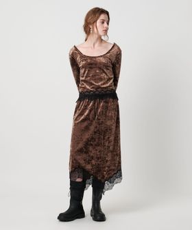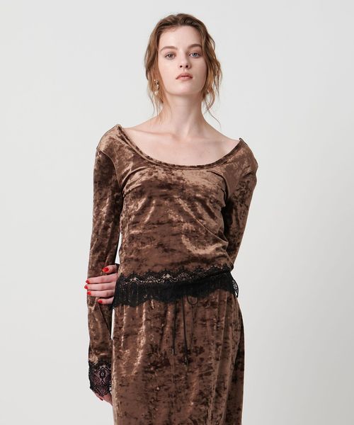 ニュアンスのある見え方の軽やかなベロア素材とレースを組み合わせています。