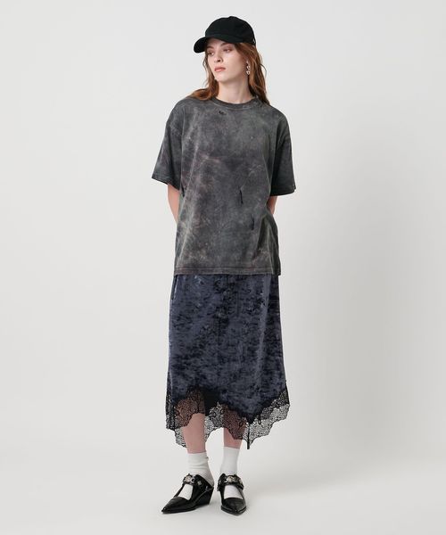 <ASTRAET>ベロア/レース イレギュラーヘムスカート