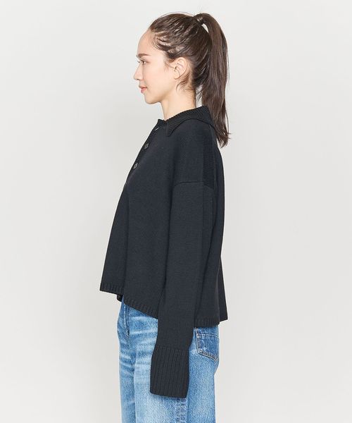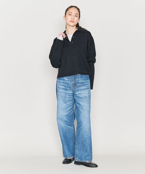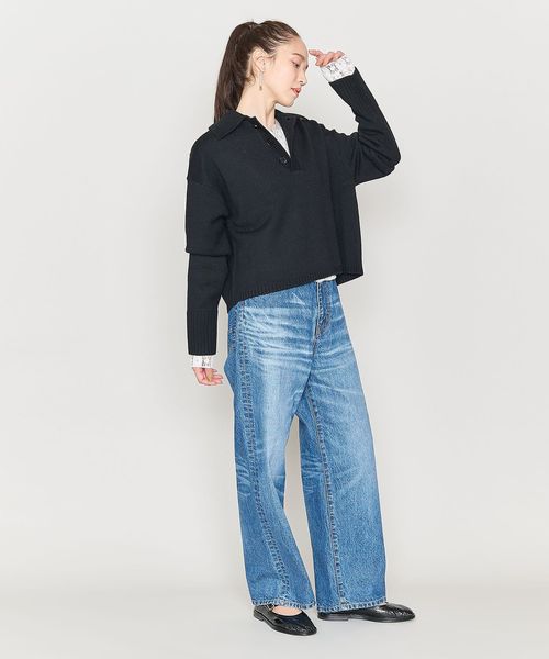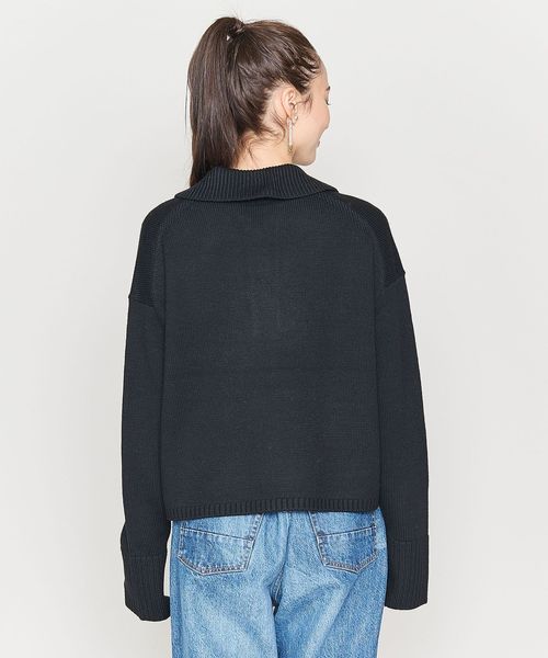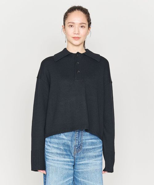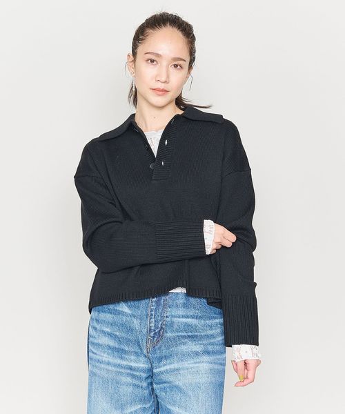 ビッグシルエットでも落ち感があり少し着丈をすっきりさせて大人っぽい雰囲気に仕上げたポロニット。