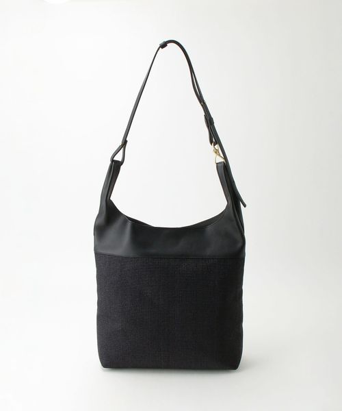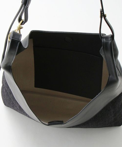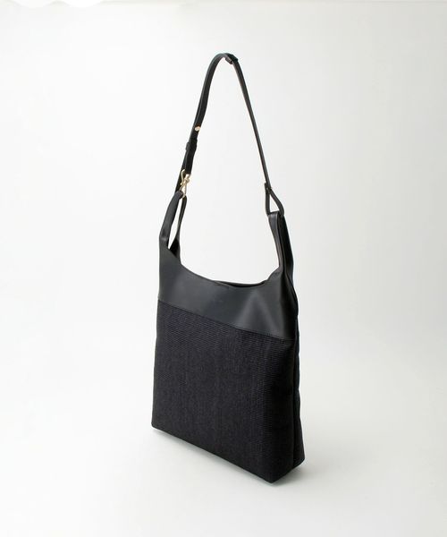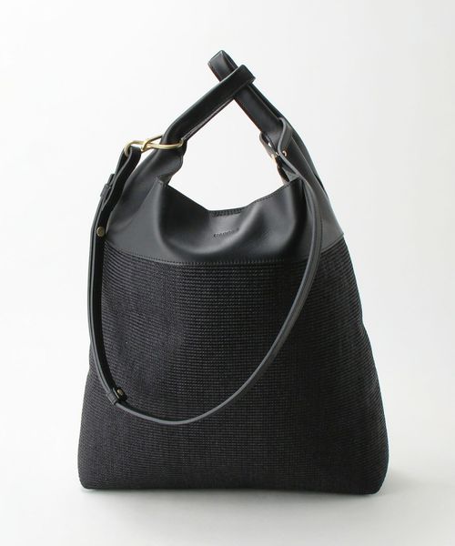 ショッピングバッグタイプの異素材コンビデザインのショルダーバッグ。