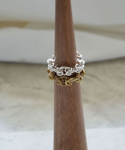 クラフト感のあるデザインの2本セットのチェーンリング。