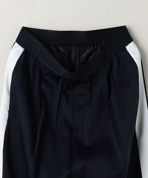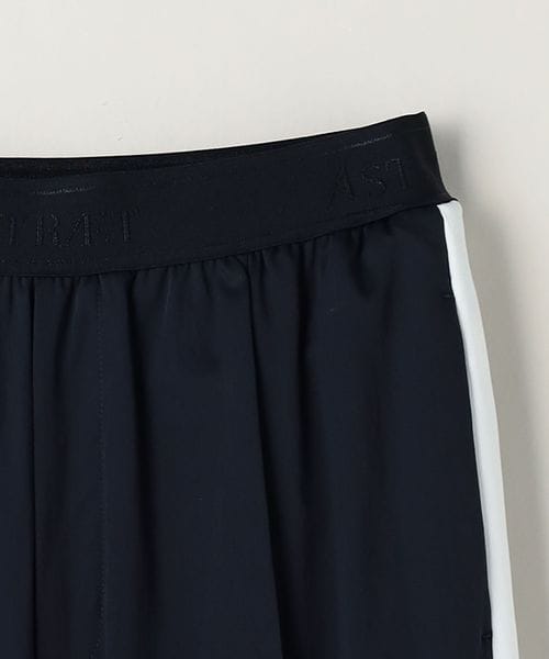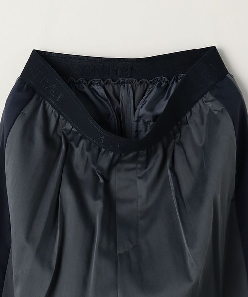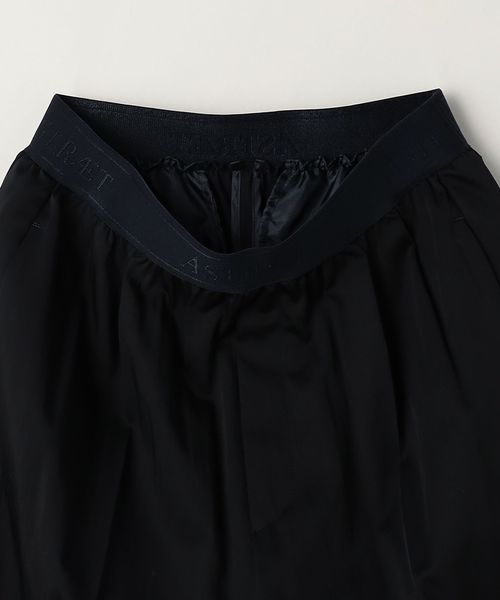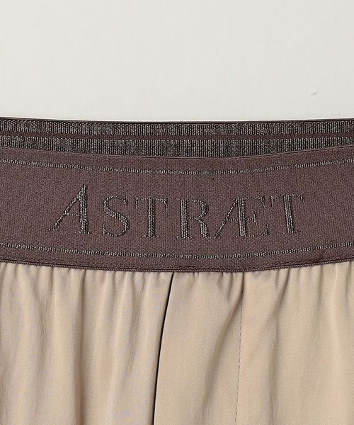 ASTRAETロゴ入りのウエストベルトはゴム仕様でリラックス感のあるワイドパンツ。