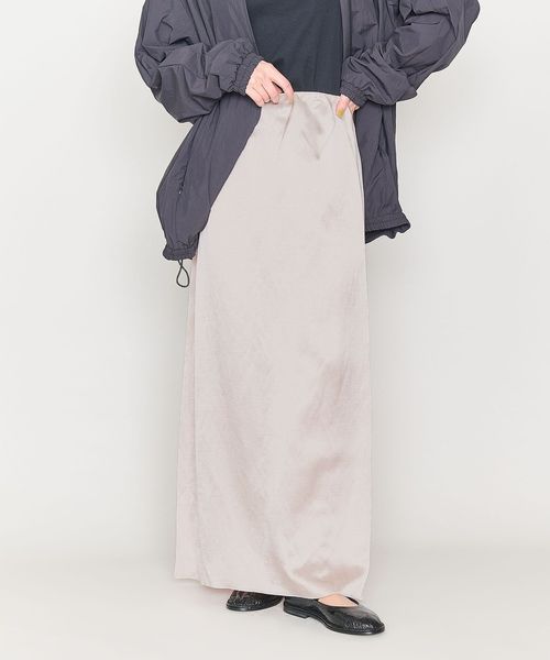 ウエストゴム仕様なのでローウエストでも着用いただけるロングタイトスカート。