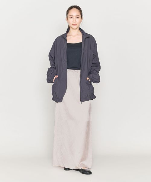 シンプルなスカートなので様々なコーディネートと好相性ですが、素材感にコントラストをつけたコーディネートもおすすめです。