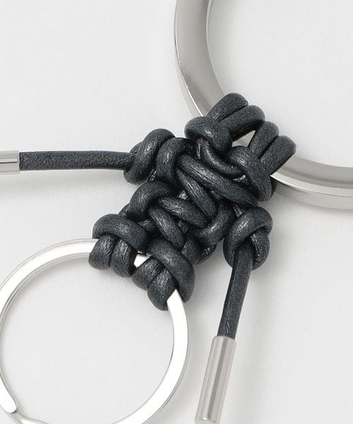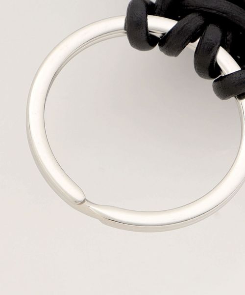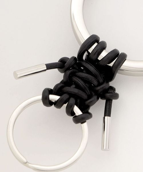 レザーコードをパラコードのように編み込んで人形のようなシルエットに仕上げたキーリング。