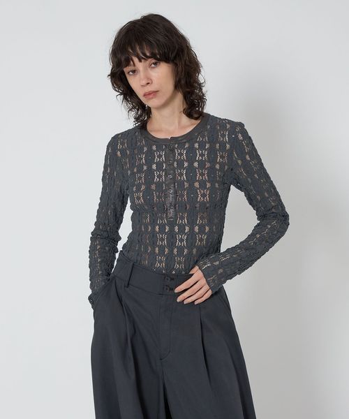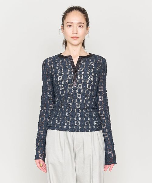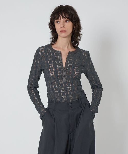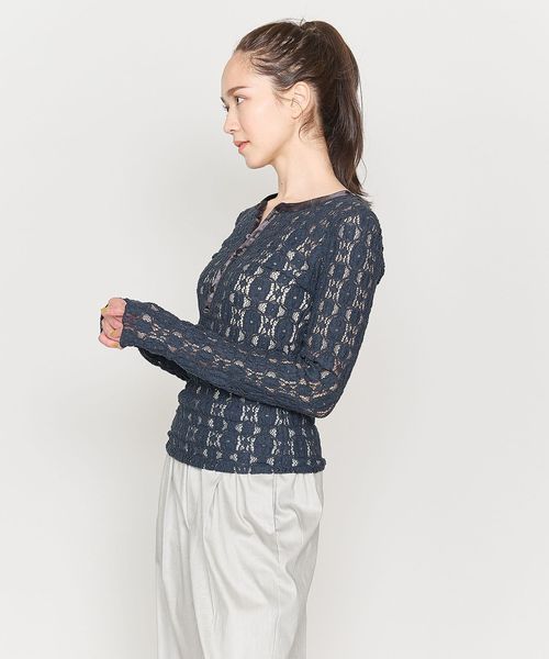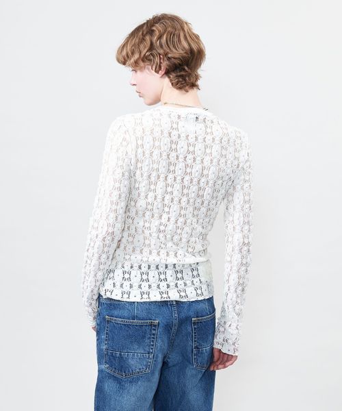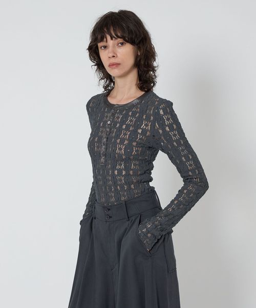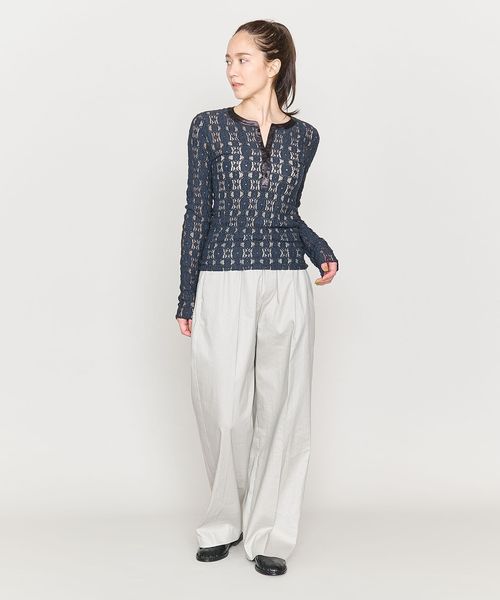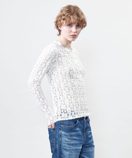 シアー感のあるレース使いがコーディネートのアクセントにぴったりのカットソー。