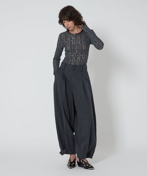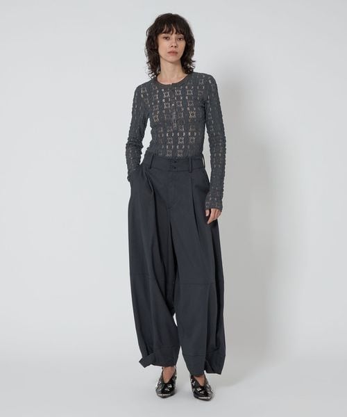 バギーシルエットパンツやワイドデニムなどボリュームのあるボトムスとあわせてカジュアルなコーディネートがおすすめです。