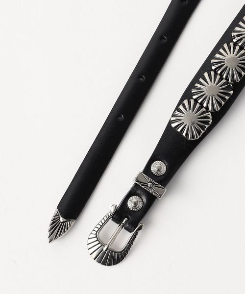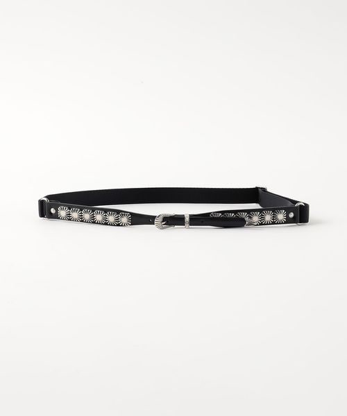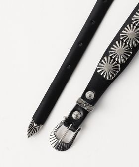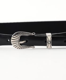 メタルパーツをあしらったブランドらしいデザインのベルト。