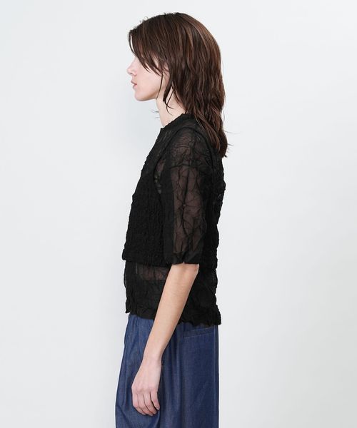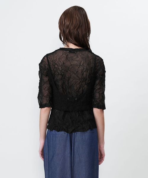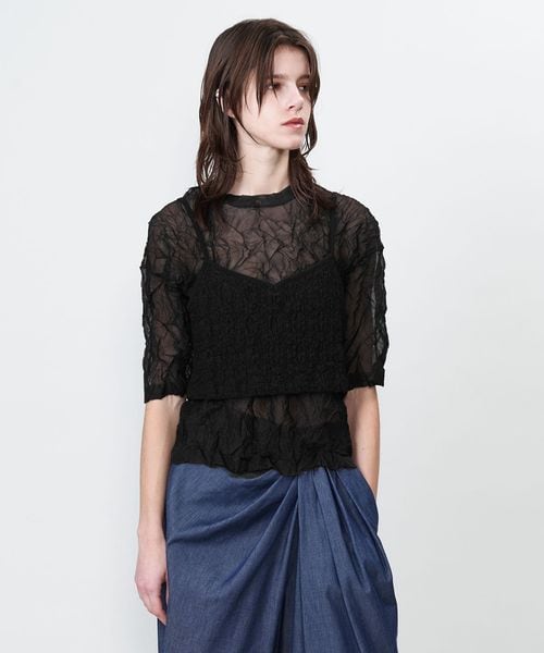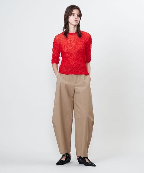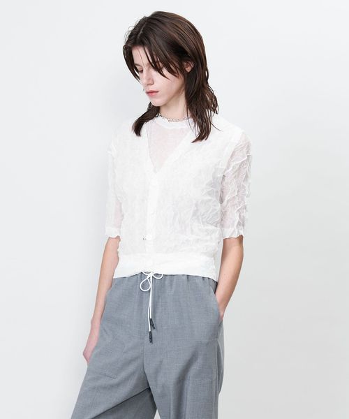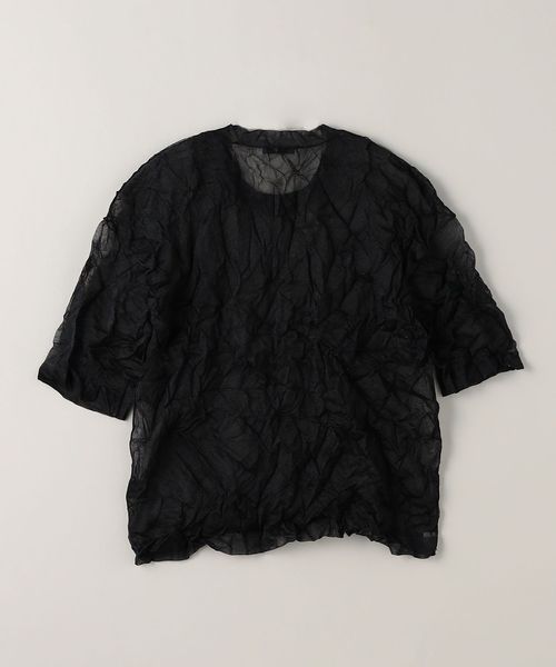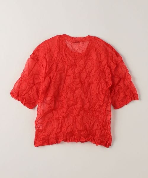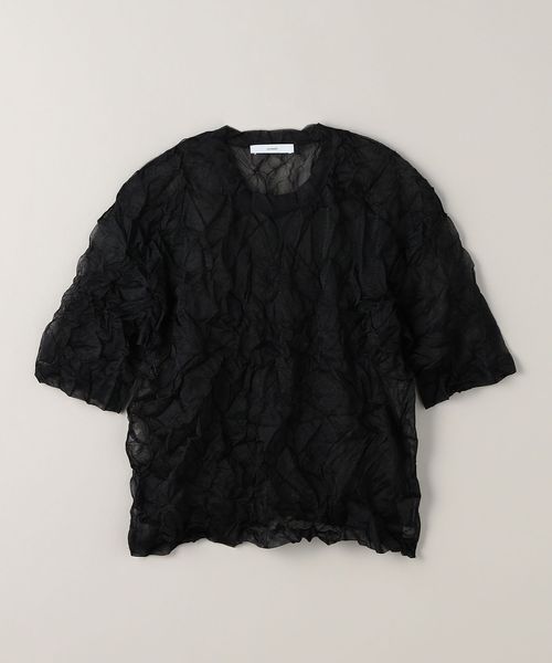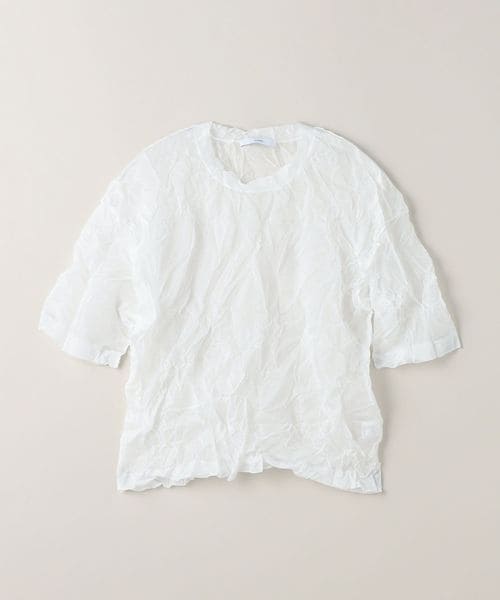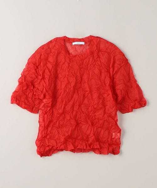 くしゅっとしたリンクル加工を施した存在感あるショートスリーブニット。
