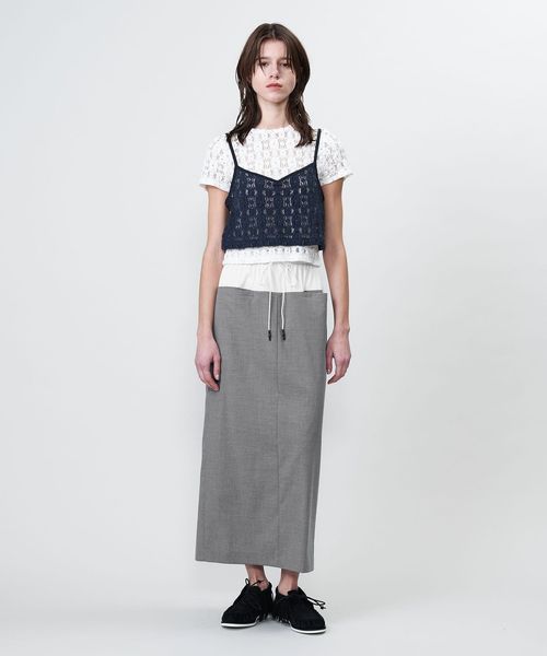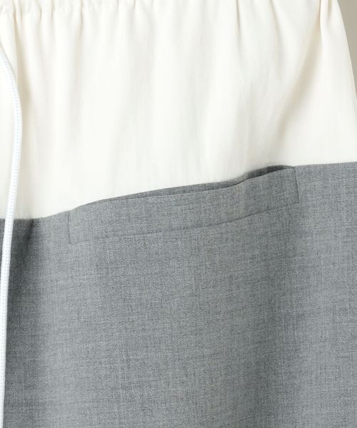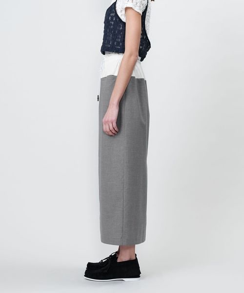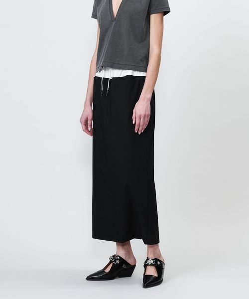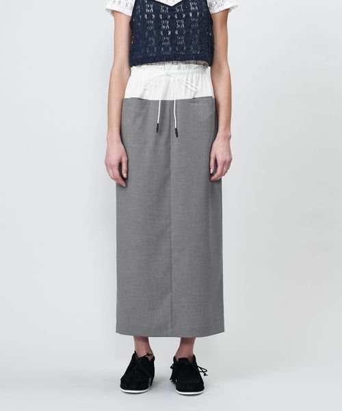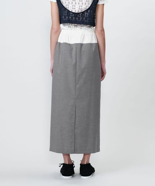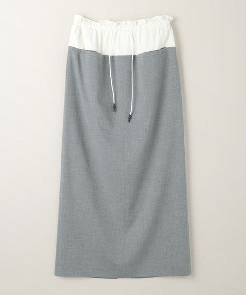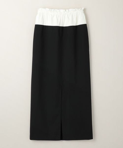 ウエスト素材切り替えのコンビデザインが特徴のロングタイトスカート。
