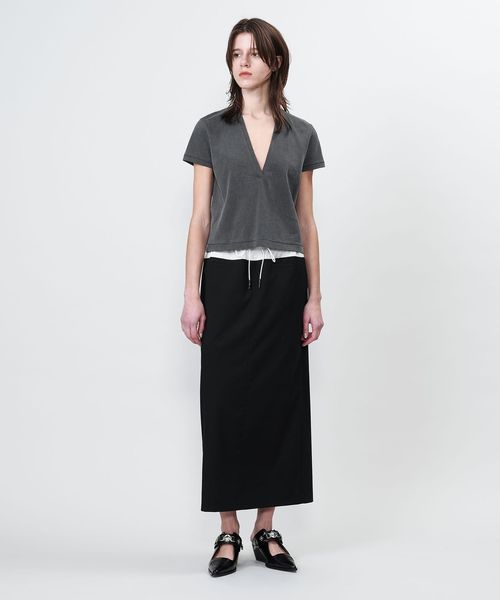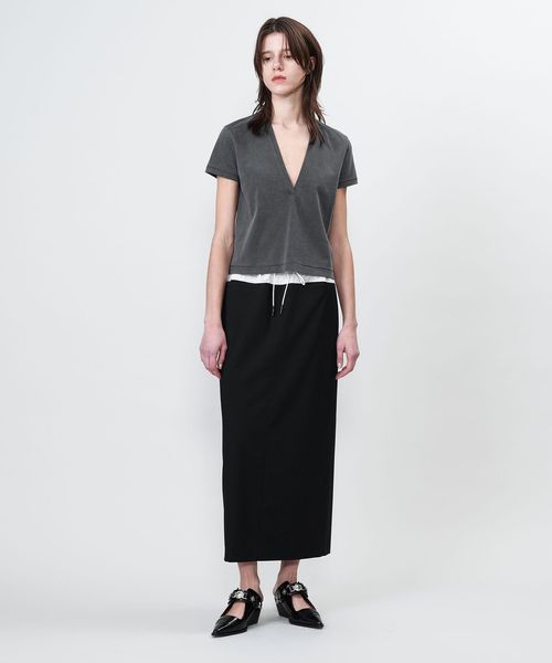 ウエストのドッキングデザインが魅力的なロングタイトスカート。