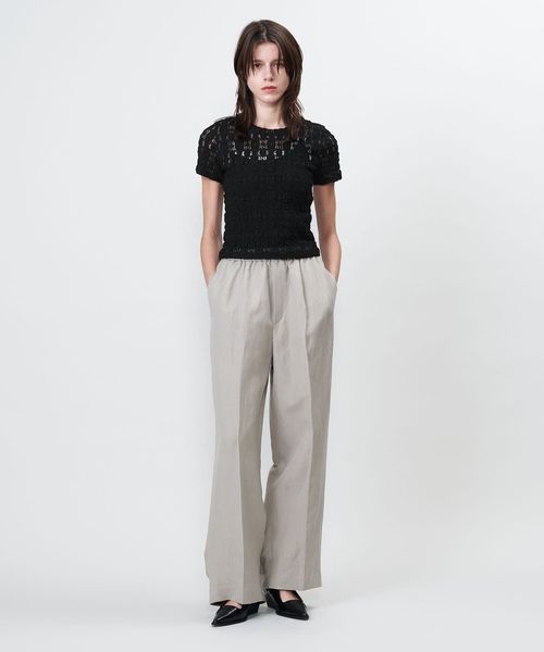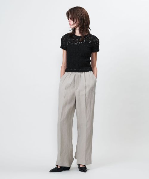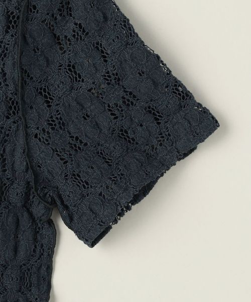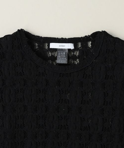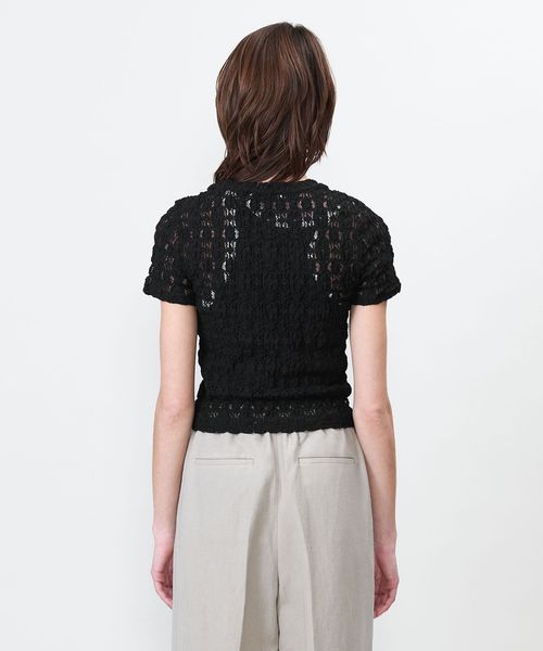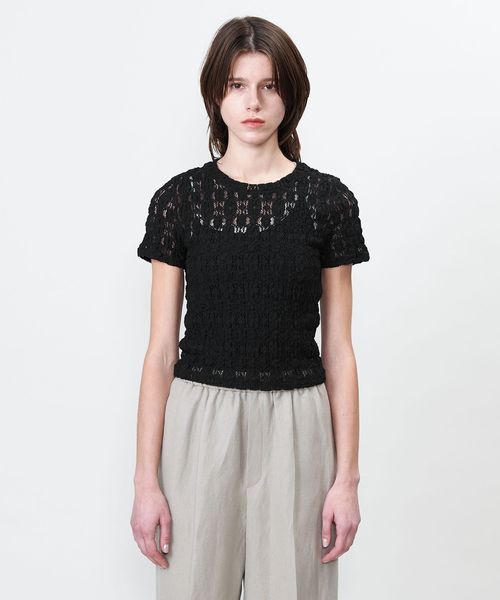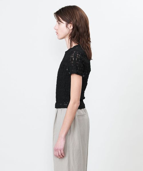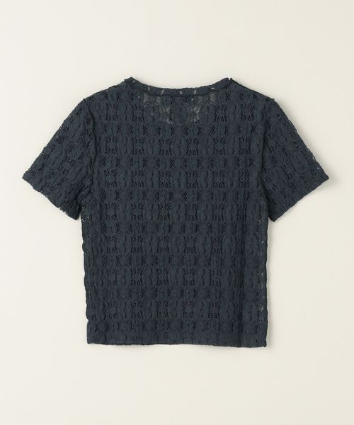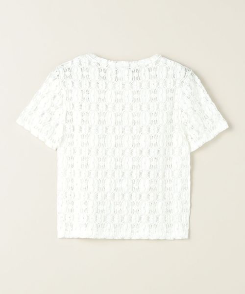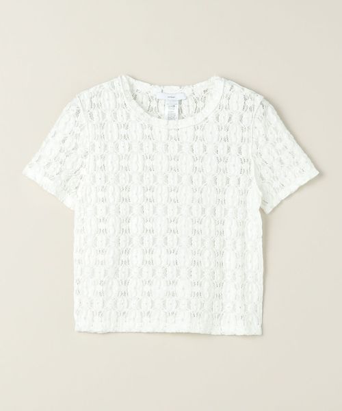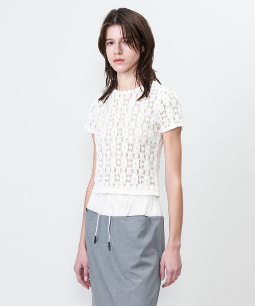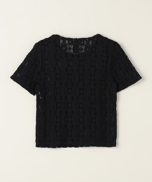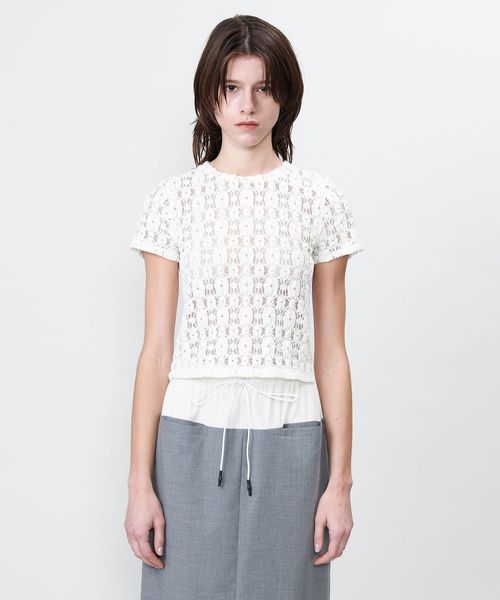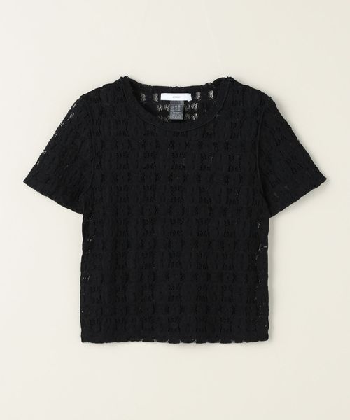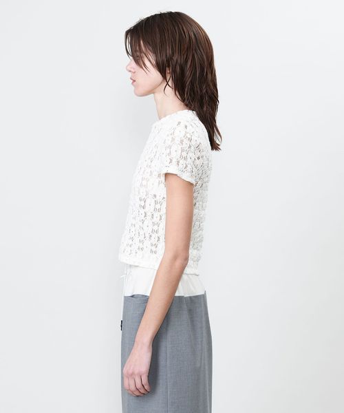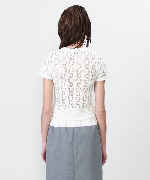 シアー感のあるレース使いがコーディネートのアクセントにぴったりのショートスリーブカットソー.。