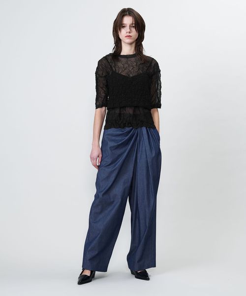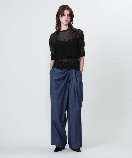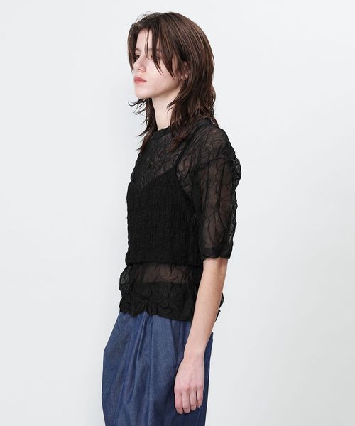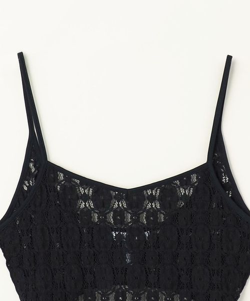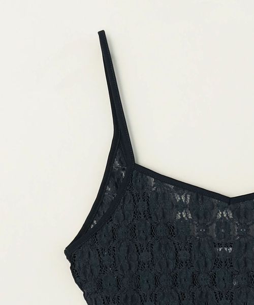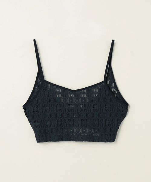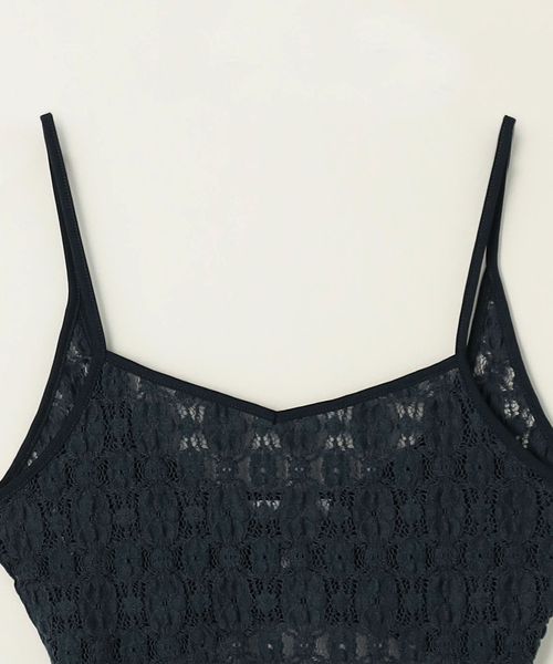 シアー感のあるレース使いがコーディネートのアクセントにぴったりのショートキャミソール
