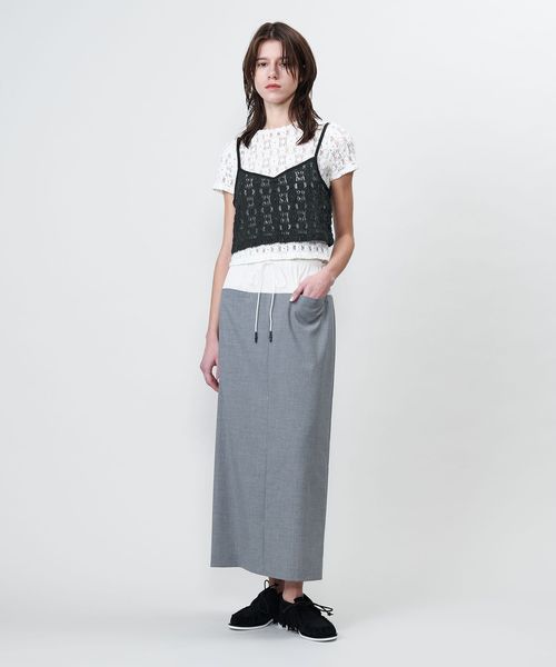 人気のレースヘンリーネックカットソーと同じ素材を使ったショートキャミソール。