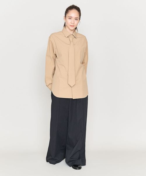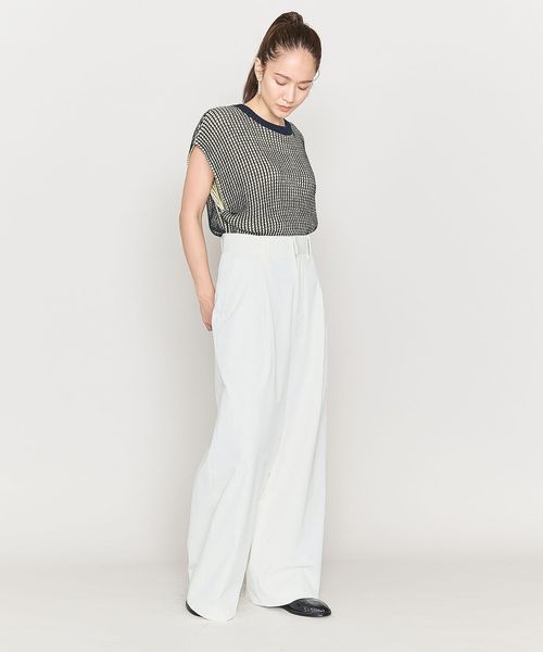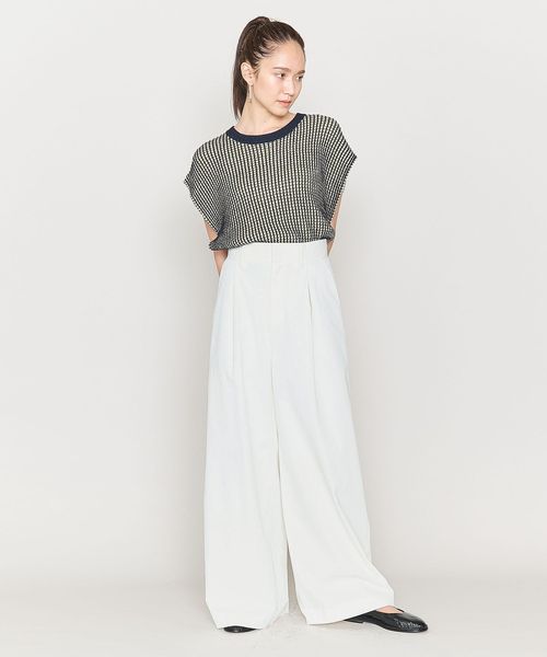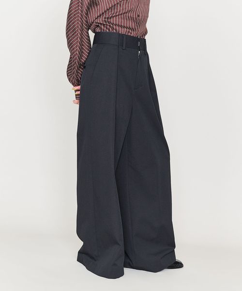 パンツをウエスト部分で畳んでタックにしたデザインのワイドパンツ。
