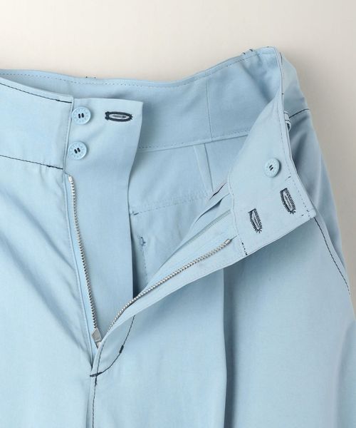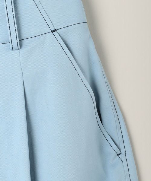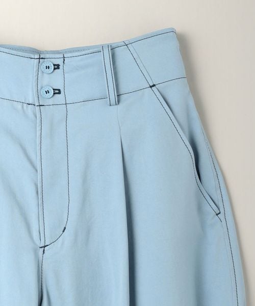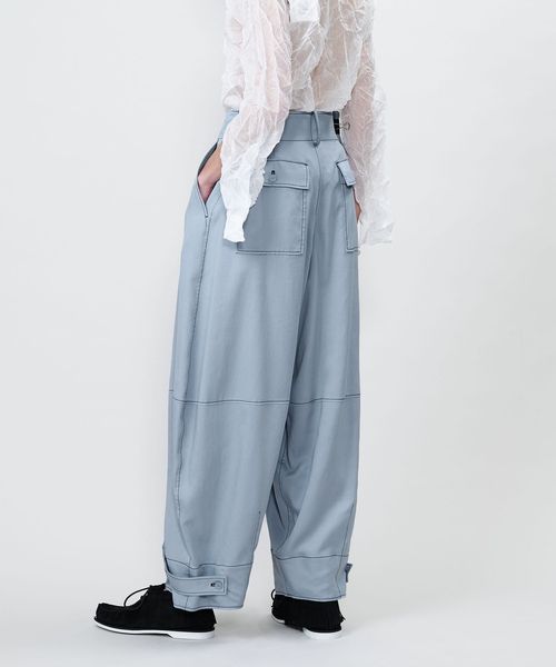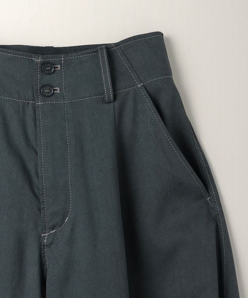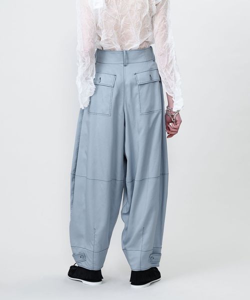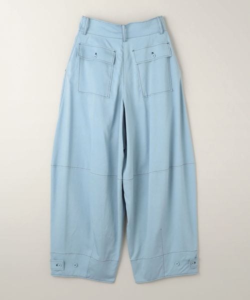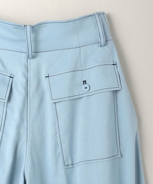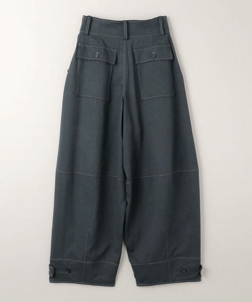 配色のステッチがアクセントになったミリタリーディテールのワイドテーパードパンツ。