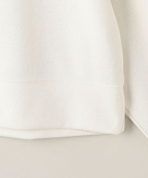 フロントを大きくあけたVネックデザインが魅力のブークレーフーデッドパーカー。