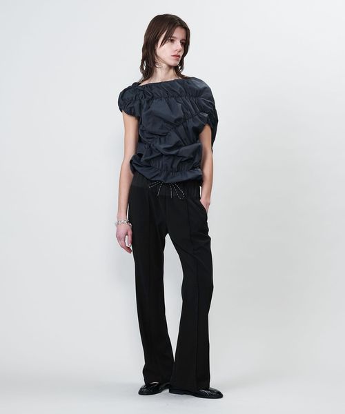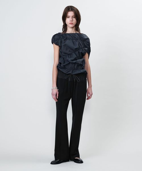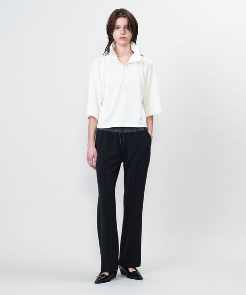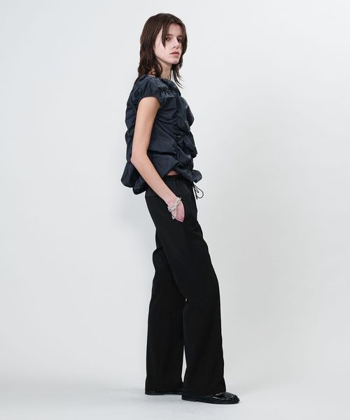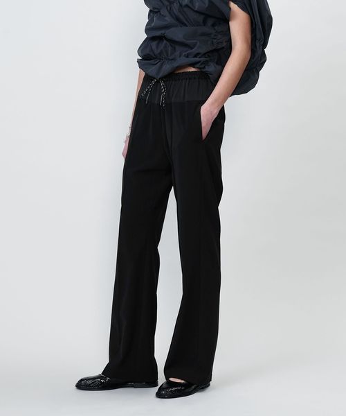 フレアシルエットと細めのラインが上品なドローストリングのイージーパンツ。