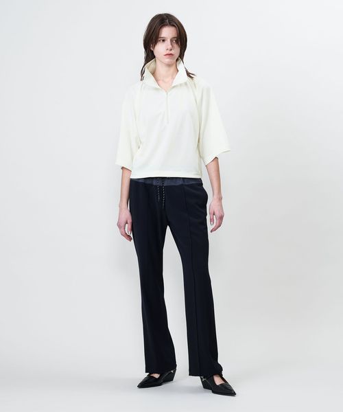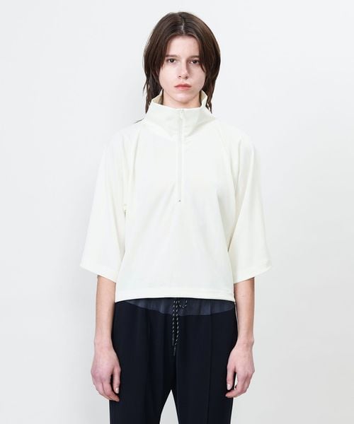 ネックの開き具合で雰囲気を変えられるハーフジップのスタンドカラープルオーバー。