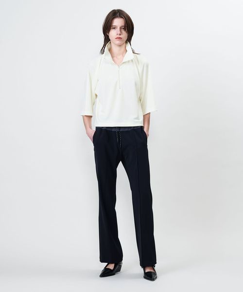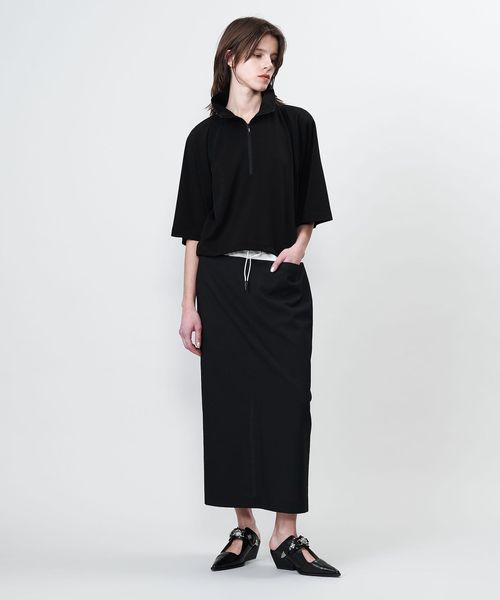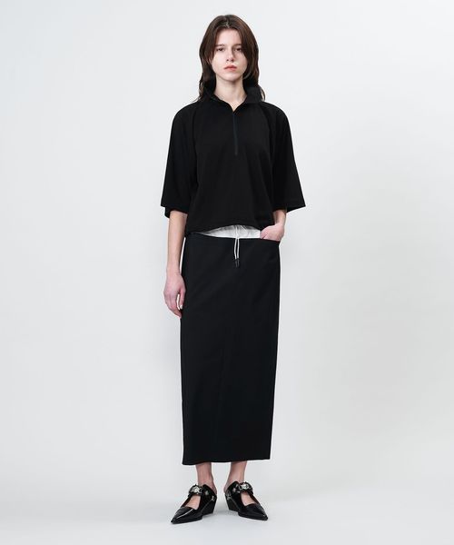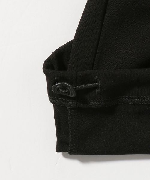 ゆったりしたサイズ感ですが、裾のサイドにゴムコードを施してシルエットや着丈を変化させられるデザインです。
