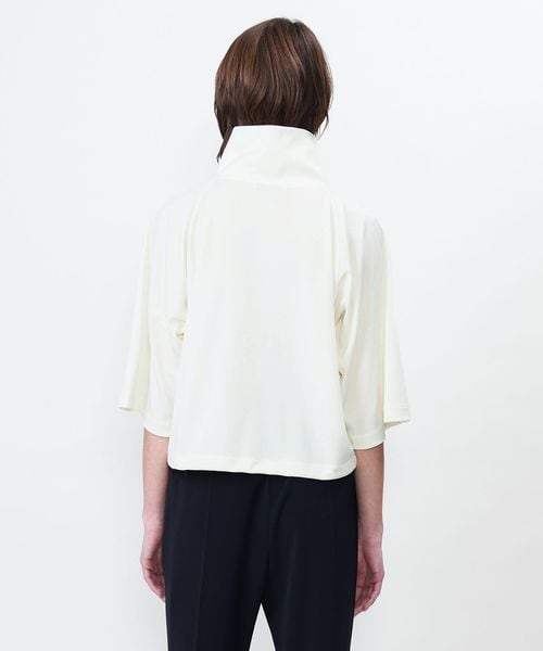 スタンドカラーで首周りをすっきりとした印象に仕上げたラグランスリーブカットソー。
