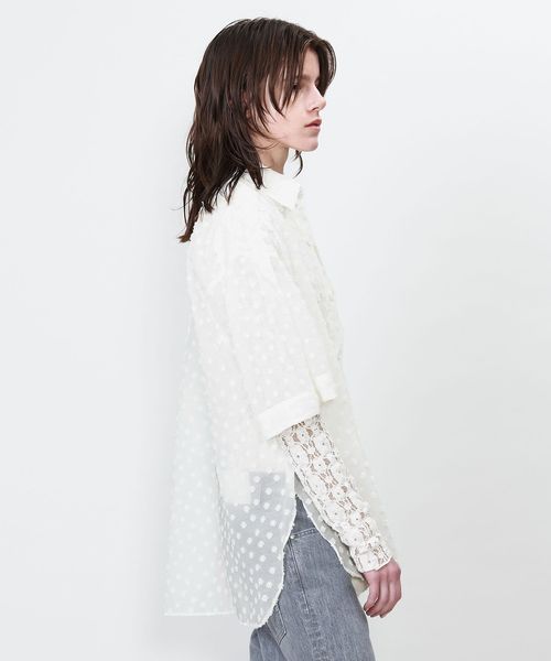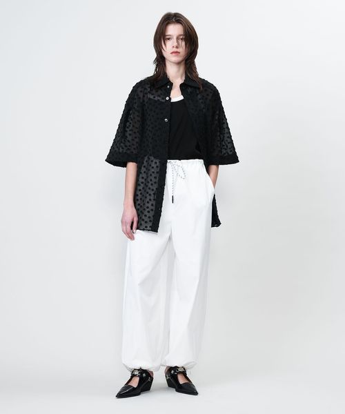 立体的なドット柄とシアー感が目を惹くレギュラーカラーの半袖シャツ。