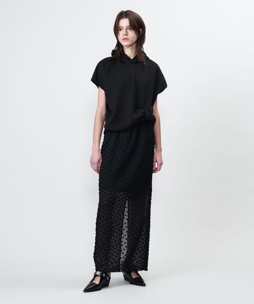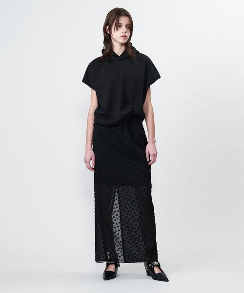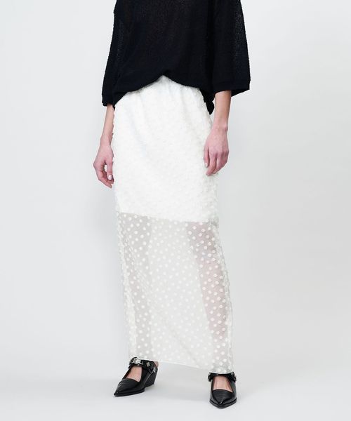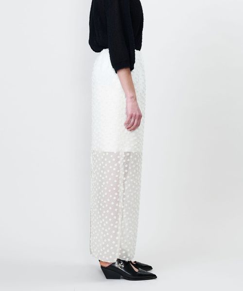 繊細なシアーに施されたドット柄が華やぐタイトスカート。